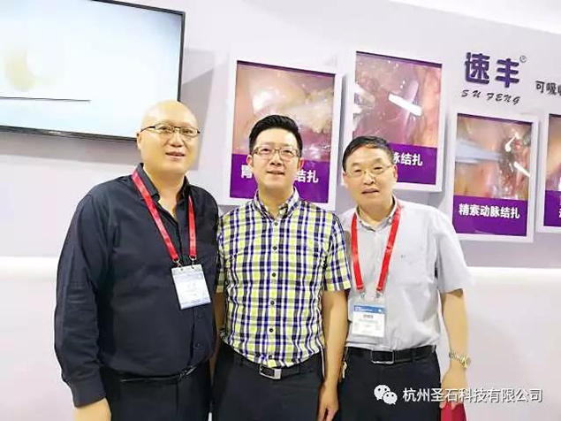 河南省醫(yī)學(xué)會(huì)微創(chuàng)外科分會(huì)新老主任委員河南省人民醫(yī)院微創(chuàng)中心主任張超教授及武警河南總隊(duì)醫(yī)院普外科主任趙國(guó)強(qiáng)教授也特意到訪我司展臺(tái),與我司石磊董事長(zhǎng)合影,表達(dá)對(duì)代表國(guó)貨優(yōu)質(zhì)產(chǎn)品速豐?的認(rèn)可與支持。